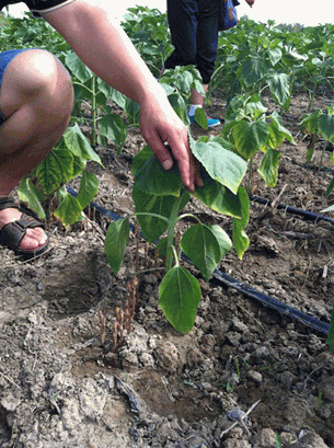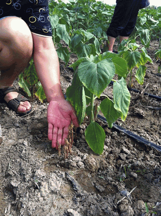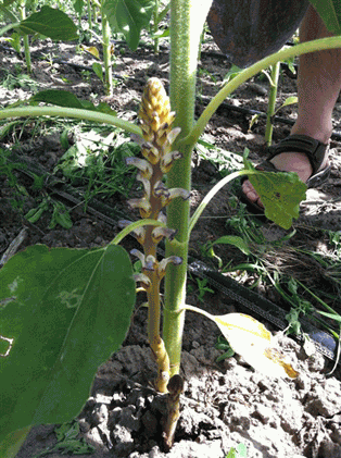 圖1: 食葵列當寄生在向日葵植株上 圖2 :仔細觀察產(chǎn)品對列當?shù)姆乐?/span>效果