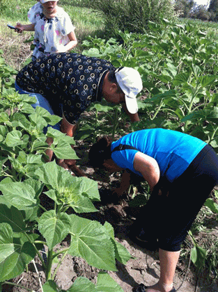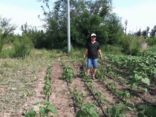 圖7:仔細觀察列當危害 圖8:劉總在對照組地里思考著