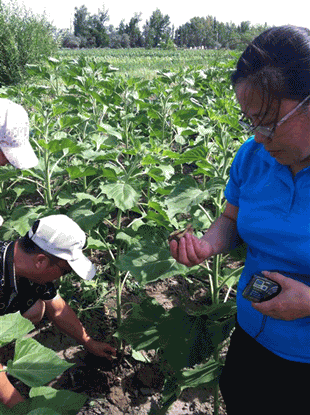 2013年,新疆科技特派員在福??h食葵列當防治成功