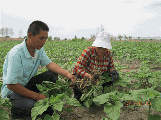 視察“吉祥雨”復合微生物菌劑防治葵花列當圖
