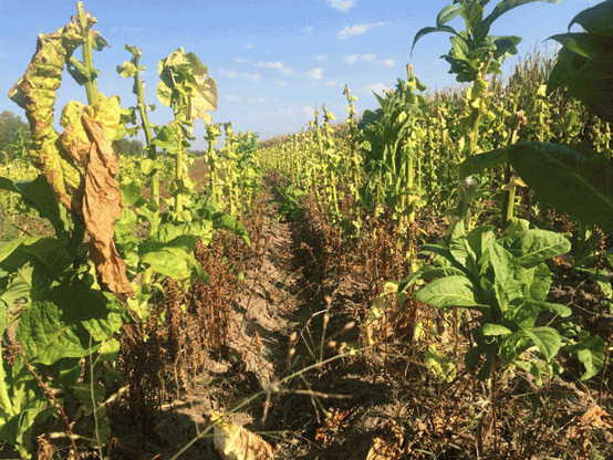 吉林省鎮(zhèn)賚縣煙草列當(dāng)危害嚴(yán)重造成煙葉減產(chǎn)畝產(chǎn)不足300斤,且次品煙葉占50%