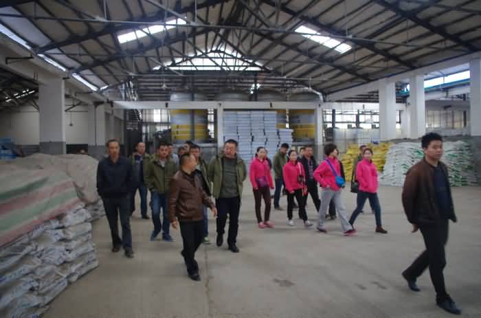 2014年10月31—11月1日,新疆偉農(nóng)科技發(fā)展有限公司馬董事長和孫總經(jīng)理,攜公司員工37人,專程來到成都華宏生態(tài)農(nóng)業(yè)科技有限公司參觀考察,成都華宏公司總經(jīng)理李智強(qiáng)、副總經(jīng)理陸勇、廣漢分公司總經(jīng)理姚虞和各部門負(fù)責(zé)人熱情地接待了遠(yuǎn)方來的貴賓。在李總等的引領(lǐng)下,他們分別參觀了華宏公司大量元素水溶肥料生產(chǎn)線、氨基酸液肥、“施地佳”土壤調(diào)理劑生產(chǎn)線和微生物發(fā)酵車間。偉農(nóng)公司有員工風(fēng)趣地說:很榮幸來到“施地佳”土壤調(diào)理劑的娘家參觀考察。是的,這里就是“施地佳”土壤調(diào)理劑的誕生地,成都華宏生態(tài)農(nóng)業(yè)科技有限公司經(jīng)過近10年的研發(fā)、試驗(yàn)和不斷改進(jìn),“施地佳”土壤調(diào)理劑產(chǎn)品已趨于成熟,它將在全國的土壤改良行業(yè)發(fā)揮它獨(dú)特的作用。