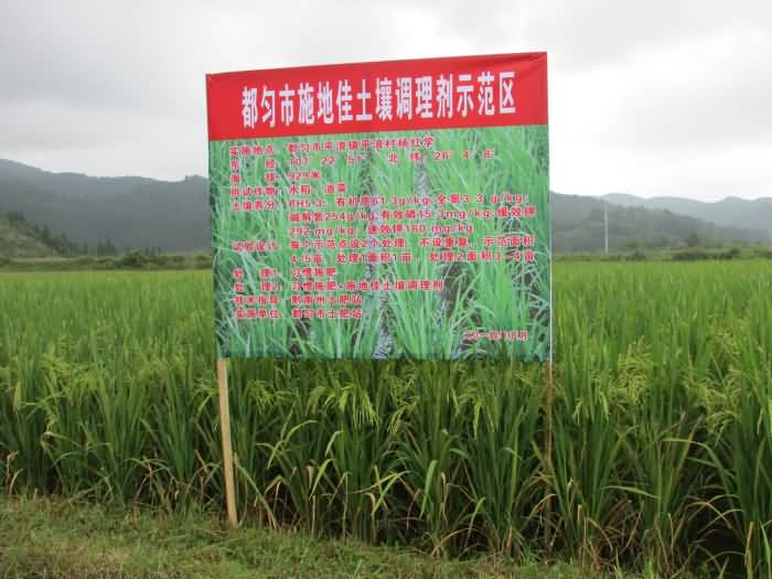 2014年農業(yè)部全國農技推廣服務中心安排在貴州省都勻市土肥站進行酸化土壤調理的試驗,試驗結果顯示“施地佳”酸化土壤調理劑第一年在當?shù)刂饕Z食作物水稻上的試驗成功,實驗結果土壤酸度降低,土壤容重降低,稻谷增產幅度達到6%以上,我們的試驗計劃是三年定點示范,為我們的土壤改良總結一套成功的可行的實施方案。