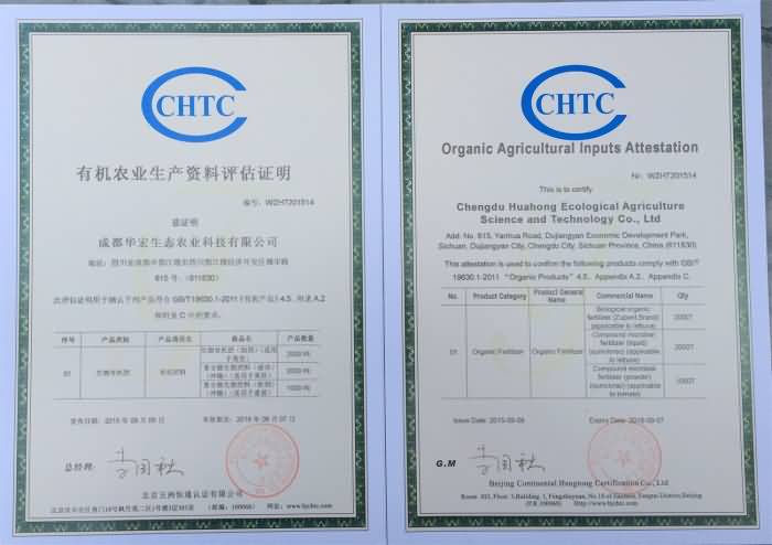 今年9月初,成都華宏生態(tài)農(nóng)業(yè)科技有限公司通過對國家有機(jī)農(nóng)產(chǎn)品認(rèn)證的標(biāo)準(zhǔn)的自我衡量,向國家認(rèn)證權(quán)威機(jī)構(gòu)申請,經(jīng)過嚴(yán)格的認(rèn)證考核,獲得以下三個產(chǎn)品的有機(jī)認(rèn)證:(1)“助邦”牌生物有機(jī)肥、(2)“神鋤”復(fù)合微生物肥料(液體)、(3)“神鋤”復(fù)合微生物肥料(粉劑),這是我公司長期以來倡導(dǎo)和注重生產(chǎn)綠色產(chǎn)品,保障民眾健康的理念的結(jié)果。