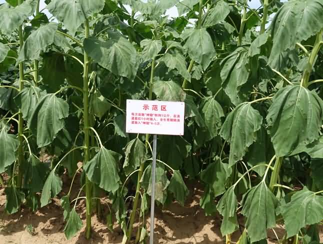 示范的時(shí)間選在了2015年5月1日至10月10日期間,示范的地點(diǎn)位于建平縣義成功鄉(xiāng)老四家子村二東北的某處向日葵種植田,土壤類型為當(dāng)?shù)胤N植向日葵較為常用的風(fēng)沙土,此次示范由成都華宏生物委托遼寧省建平縣土壤肥料工作站全權(quán)負(fù)責(zé)。筆者了解到,目前整個(gè)示范過程已經(jīng)結(jié)束,建平縣土壤肥料工作站也已經(jīng)出具了此次示范過程的報(bào)告。