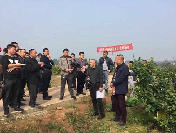 示范現(xiàn)場會由安岳縣政府、安岳縣檸檬產(chǎn)業(yè)局組織,全縣各鄉(xiāng)鎮(zhèn)檸檬專業(yè)技術(shù)員、種植大戶、合作社、檸檬產(chǎn)業(yè)公司、農(nóng)資公司一行100余人到場參加,并共同參觀了華嚴(yán)鎮(zhèn)安岳國家農(nóng)業(yè)科技園實施生物有機水肥一體化技術(shù)在檸檬生產(chǎn)上的應(yīng)用,該技術(shù)應(yīng)用由成都華宏生物科技有限公司與安岳檸檬產(chǎn)業(yè)局共同合作發(fā)起。