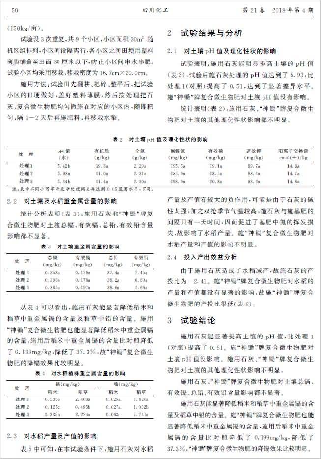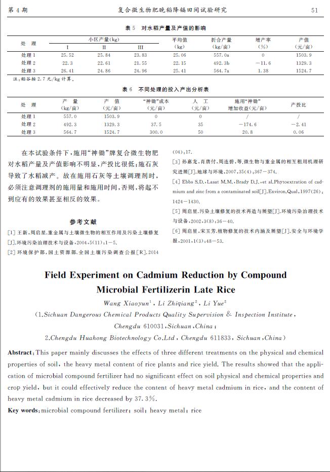 復(fù)合微生物肥晚稻降鎘田間試驗研究