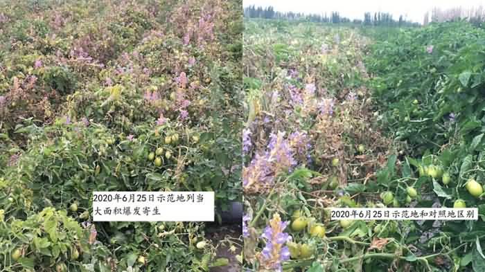 新疆焉耆縣包爾海鄉(xiāng)低產(chǎn)田鹽堿地改良、生物有機防治番茄列當 700 畝示范田成果匯報