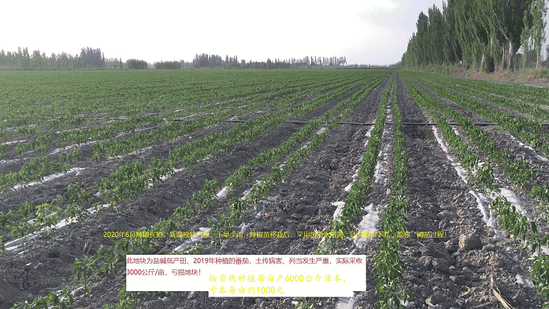 新疆巴州焉耆縣包爾海鄉(xiāng)租賃的鹽堿土壤低產(chǎn)田生物有機水肥一體化改良土壤和生物防治辣椒疫病方案總結(jié)